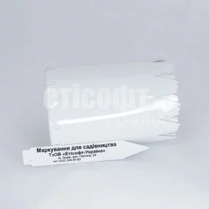 Бірки для рослин “Стрілки” виготовлені з якісного білого пластику, що забезпечує довготривале використання, стійкість до атмосферних умов, хімічних засобів та механічних пошкоджень. Вони витримують негативний вплив води, вологи, сонця, ультрафіолету, а тому можуть використовуватися у жорстких умовах експлуатації. Бірки-таблички зручно устромлювати у горшки, контейнери та посадкову тару, при цьому зовсім не пошкоджуючи самі рослини, не перешкоджаючи їх вільному росту. Саме тому стрілки часто застосовуються для маркування розсади, саджанців, кімнатних розслин. Стрілки-таблички від “Етісофт-Україна” не розмокнуть при поливі чи обприскуванні рослин, оскільки вони виготовлені з цупкого PET матеріалу. Бірки для саджанців та розсади скручені у рулон та розділені між собою перфорацією. Це зручно для друку та складського зберігання.